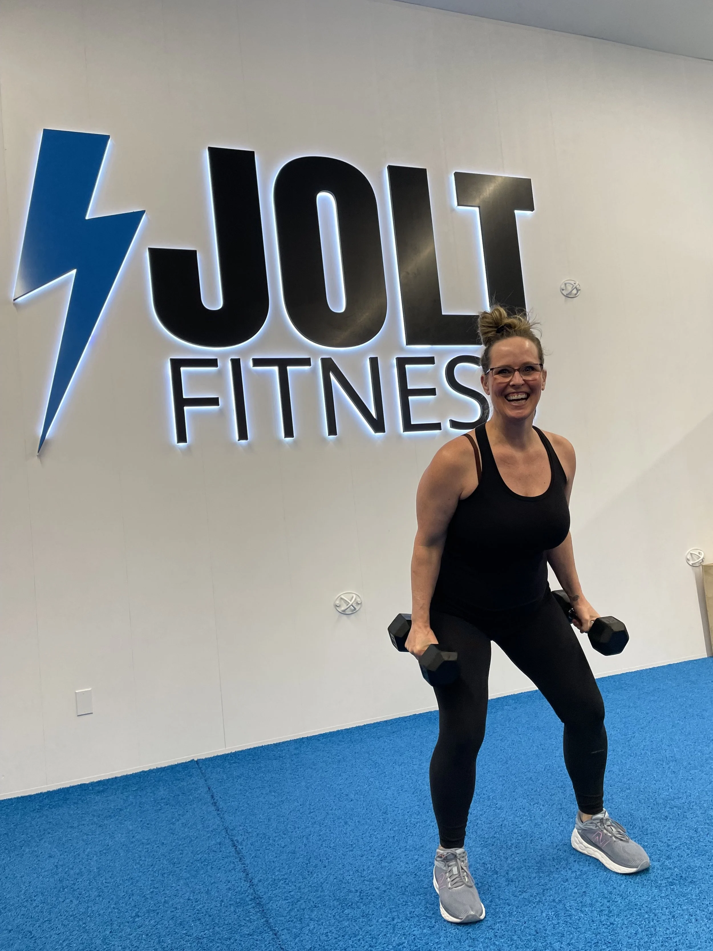In previous fitness experiences Christa felt pushed to "go harder" in ways that left her drained. With Jolt programming she feels more energized and has autonomy over her fitness: “The intentional approach makes such a difference, allowing me to feel strong and energized instead of depleted, and it’s a huge reason I enjoy coming back”.