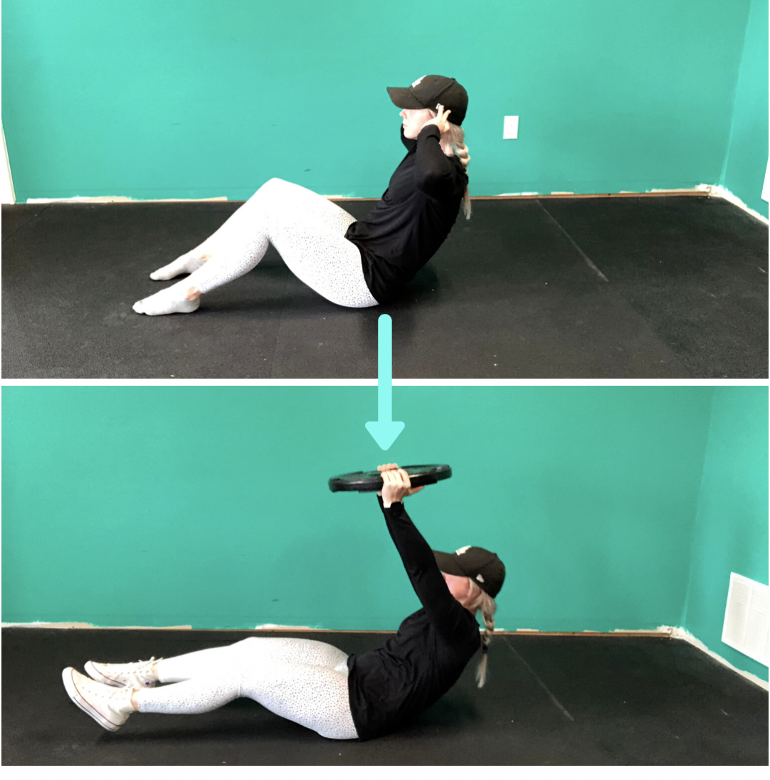 A regular sit up progressed to a weighted sit-up